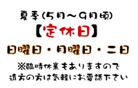 今日は5月~9月頃までの定休日変更についてお知らせいたします☆