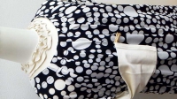 丸衿 タック入り ドット柄 チュニック quality…ポリエステル size…free 韓国製 裾に 黒いヒラヒラしたネットが ついてます 袖かフレンチになつまてます このままでも良いですが 二の腕が気になる方は カットソーを下に 組み合わせてヽ(´ー`)