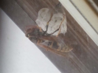 2週間くらい前から玄関のちょっと横に一匹でせっせせっせと巣作りしていたアシナガバチ。